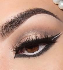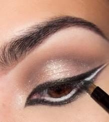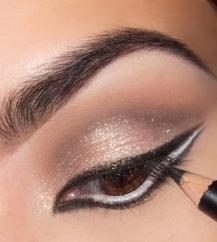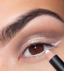 استخدمي بعد ذلك قلم الكحل باللون الأبيض وارسمي خطاً داخل العين ثمّ ارسمي خطاً صغيراً عند زاوية العين الخارجية تماماّ كما في الصورة.