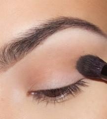 ضعي ظلال العيون باللون البيج أو النيود بواسطة فرشاة مكياج صغيرة لتوحيد لون الجفنين المتحرك والثابت.