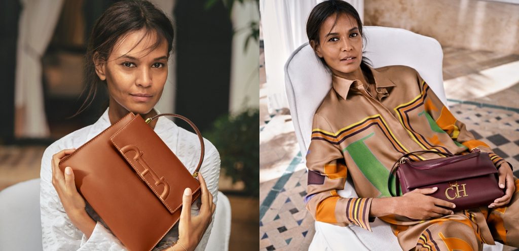 حقيبة Doma Insignia: استوحيَت هذه الحقيبة من شغف كارولينا هيريرا بركوب الخيل وترويض الخيل، فتعكس جماليات عالم الفروسية. تمّ دمج الحرفَين الأولَين من اسم Carolina Herrera في التصميم بدرزة منفّذة بأعلى درجات الإتقان للتأكيد على تميّز الحقيبة.