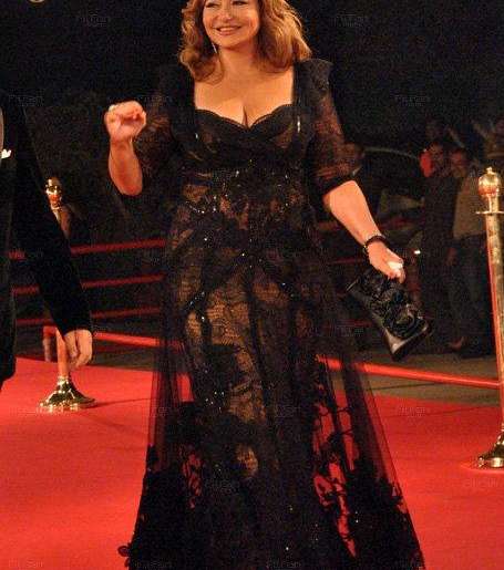في هذه الإطلالة واكبت ليلى علوي آخر صيحات الموضة إذ اختارت فستان قصير باللون الأسود تميّز بالمسامير الميتاليكية الملفتة والجلد الأسود عند الأكمام والكتفين.
