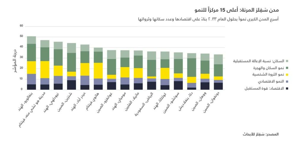 أظهر مؤشر شركة سافيلز البريطانية تواجد الرياض كالمدينة العربية الوحيدة ضمن المدن الأسرع نموًا في العالم.
