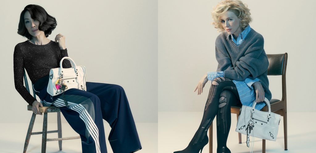 كشفت علامة بالنسياغا Balenciaga اليوم 8 أكتوبر 2024، عن فصل جديد في سلسلة دراسات الشخصيات الخاصة بها، حيث تظهر سفيرة العلامة التجارية، الممثلة الشهيرة ميشيل ييوه Michelle Yeoh، إلى جانب الممثلة نعومي واتس Naomi Watts، بحقيبة “Le City” الأيقونية.