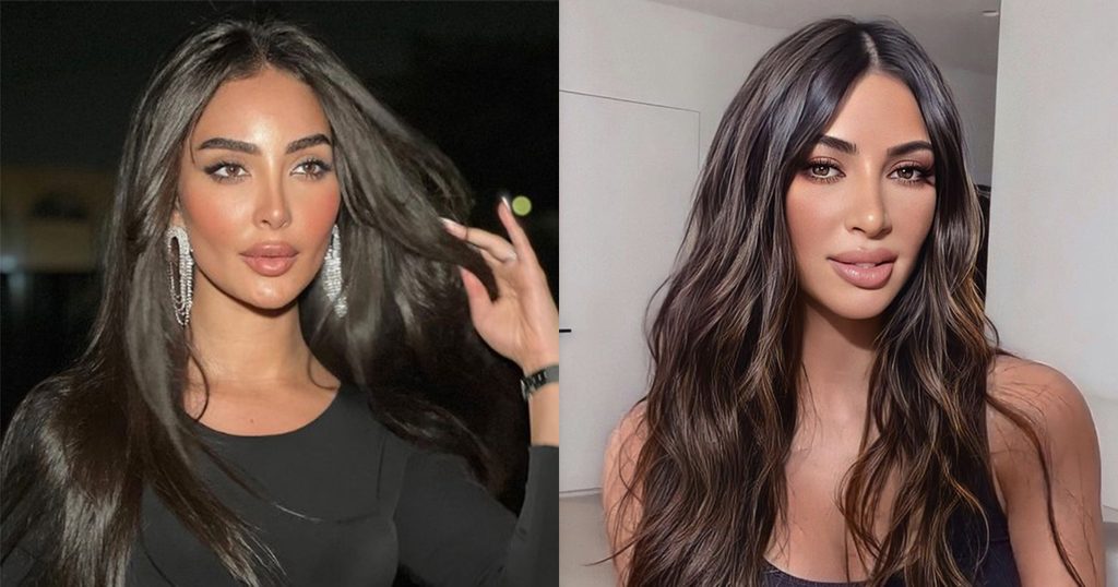 ليست تسريحة الشعر هي وجه الشبه الوحيد بين النجمتين، بل من اللافت أن نور الغندور وكيم كارداشيان إلتقطتا الصورة نفسها بحيث ظهرتا بشعر منسدل على كتفيهما وبمكياج وردي ناعم.