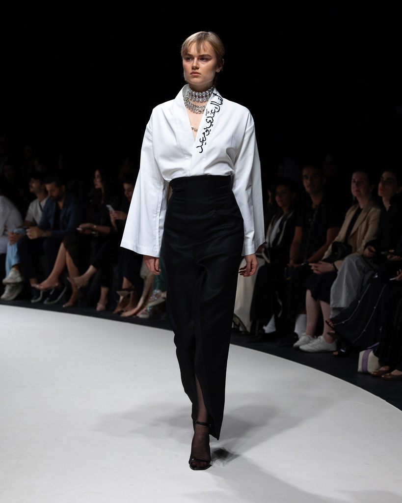 وأخبرتنا المصممة السعودية نورا سليمان في حوارها مع “ياسمينة” أنها قد اختارت أن يكون الخط العربي، أحد الأفكار المُلهمة لمجموعتها، حيث تزينت بعض قطع الأزياء بكتابات عربية تتناغم مع التصاميم الحديثة، مما يضيف لمسة من الأصالة والحداثة في آن واحد.