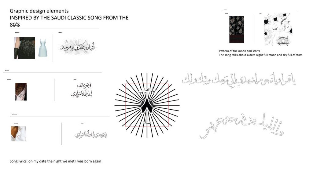ومن هُنا وجدنا تصاميم تحتوي على عبارات عربية مثل “لقياك عندي يوم عيد” التي شاهدناها على فستان أنثوي، وياقة قميص رجالي، كما وجدنا عبارة أخرى على تصميم رجالي مكتوب عليها “في موعدي ليلة لُقانا مولدي”.