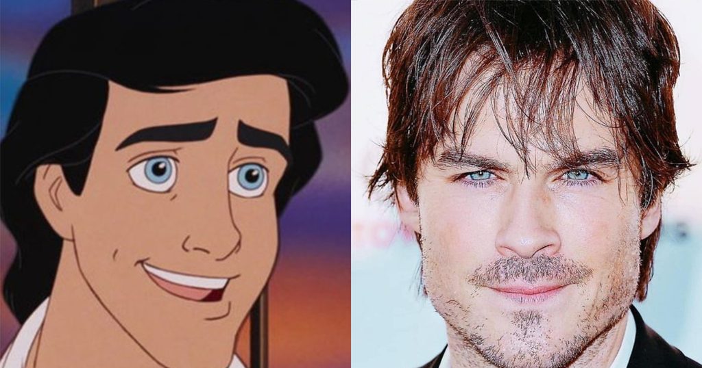 لون العيون وتسريحة الشعر نفسها وشكل الوجه هو ما يجمع بين الممثل الشهير أيان سومرهلدر والأمير إريك وهذا ما يؤكد عليه الكثيرون منذ أول ظهور للأمير حبيب حورية البحر أريل.