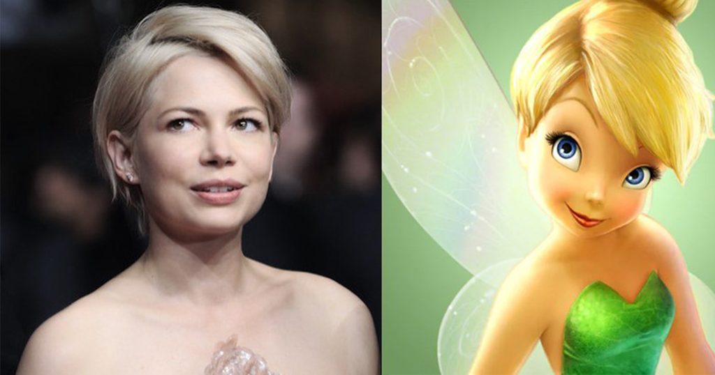 نجمة شقراء اخرى شبية إحدى أشهر أفلام كرتون ديزني، فالممثلة ميشيل ويليامز يمكن أن تكون شقيقة تينكير بيل في أرض الوقع نظرًا للشبه الكبير الذي يجمعها من ناحية قصة الشعر ولونه وملامح الوجه.