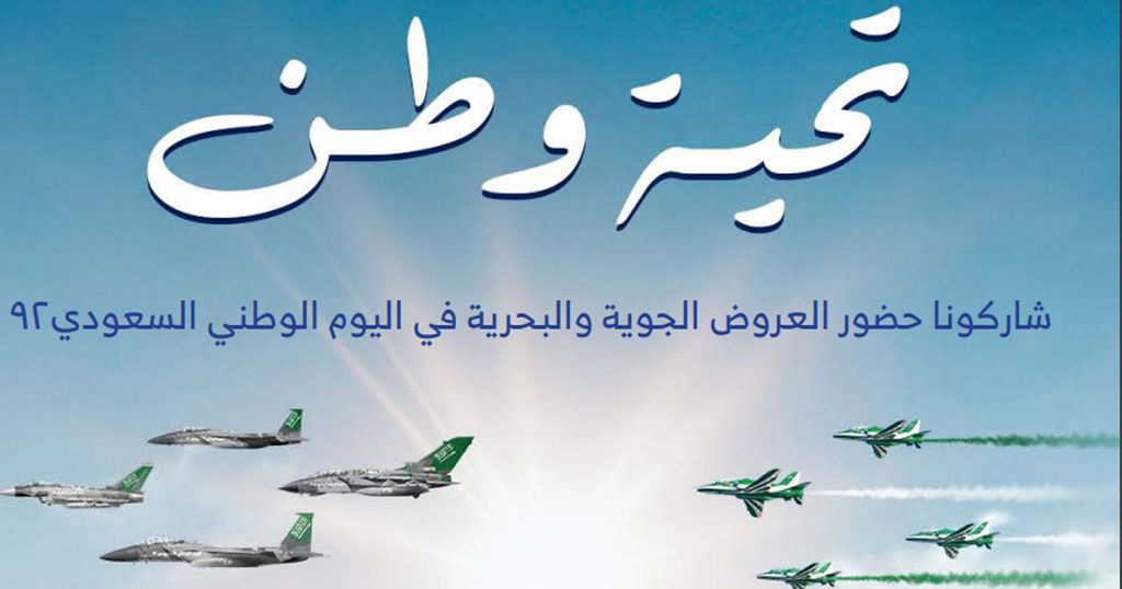 تحت شعار تحية وطن، ستنطلق العروض الجوية والبحرية في يوم 22 سبتمبر الجاري، حيث ستكون العروض الجوية في كل من: