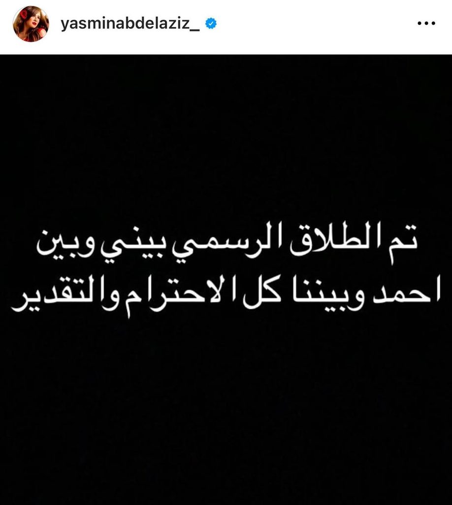 أعلنت الممثلة المصرية ياسمين عبد العزيز عن انفصالها عن زوجها الممثل المصري أحمد العوضي بعد أربع سنوات من الزواج، مما أثار صدمة لدى محبيهما.