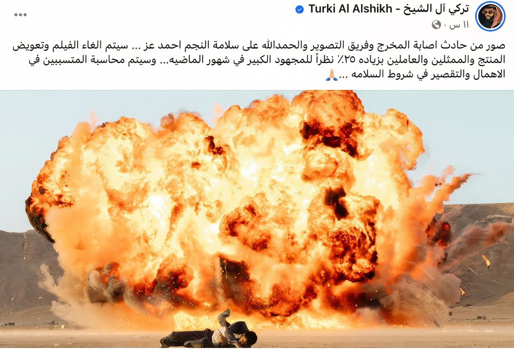 انتشرت عبر مواقع التواصل الاجتماعي صور ومقاطع نشرها المستشار تركي آل الشيخ لمشهد إنفجار مهول في موقع تصوير The seven Dogs.