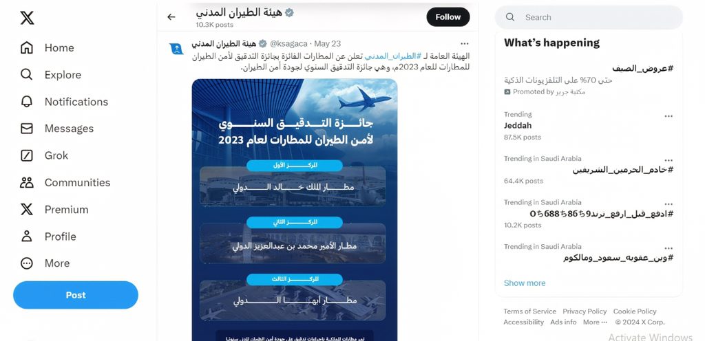 تعرفي على مطارات المملكة الفائزة بجائزة التدقيق لأمن الطيران