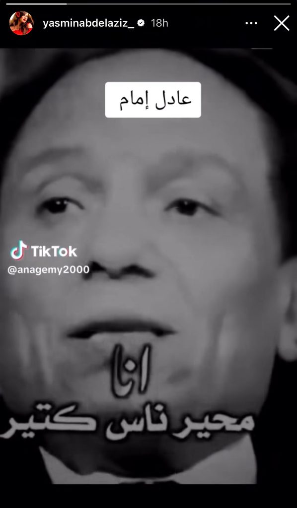 نشرت الممثلة المصرية ياسمين عبد العزيز عبر خاصية القصص المصورة في فيسبوك فيديو قديم من لقاء تلفزيوني للممثل عادل إمام، أثار اهتمام جدلاً بين متابعيها.